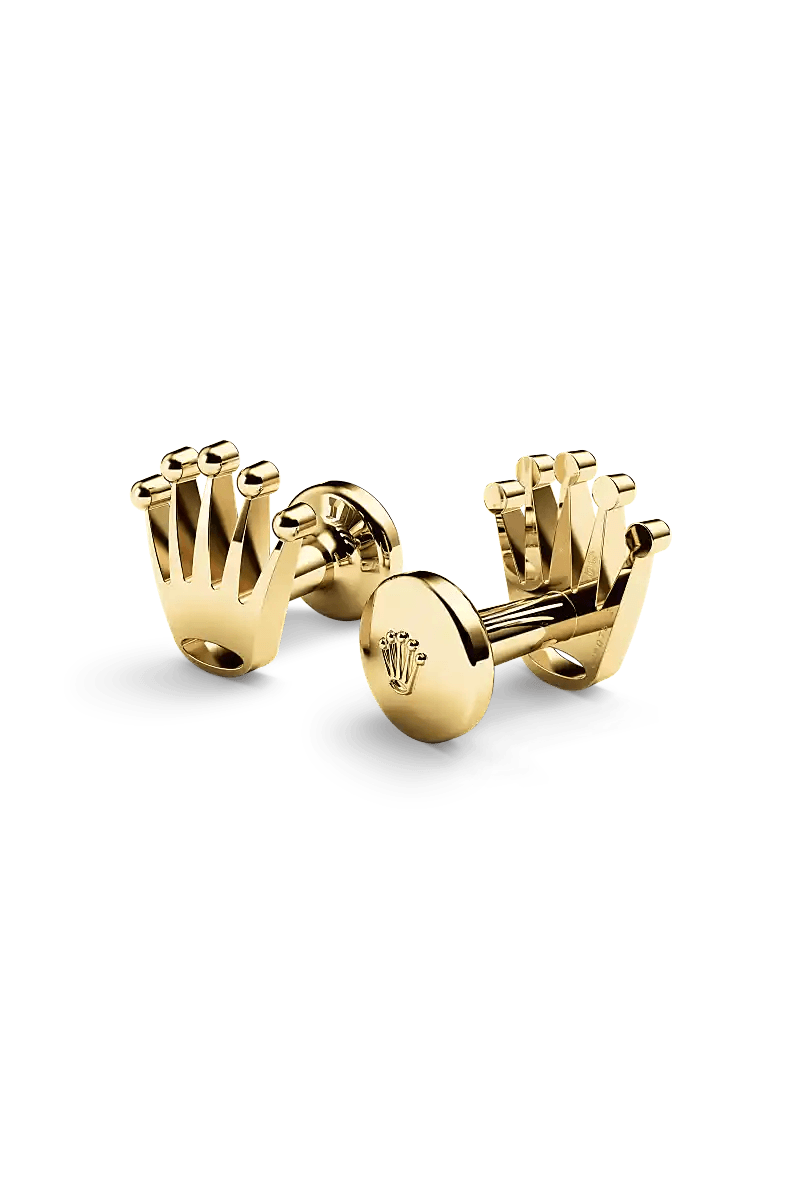 Gemelos Rolex fabricados en oro amarillo de 18 quilates con forma de la emblemática corona Rolex.